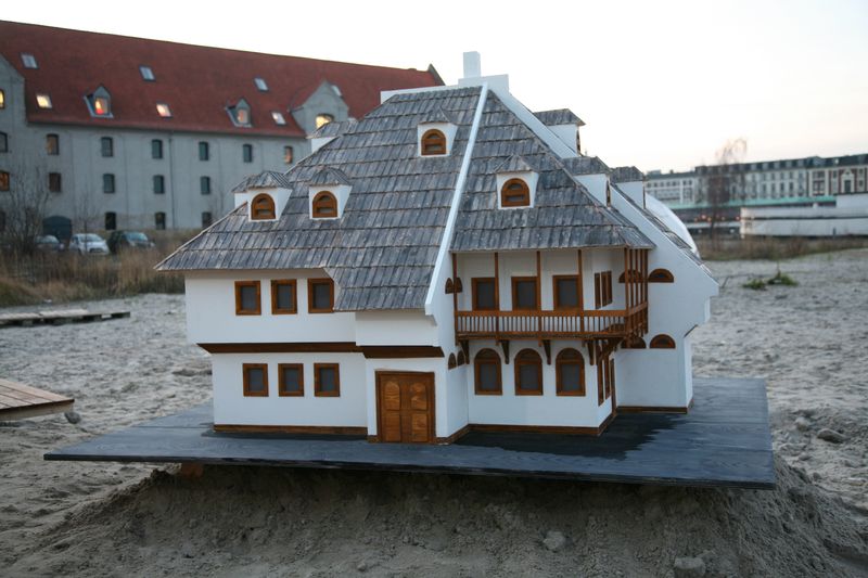THE WORK TAKES FIVE ARCHITECTURAL DRAWINGS MADE BY AMEL IBRAHIMOVIC’S FATHER REUF IBRAHIMOVIC IN 1997 AS ITS POINT OF DEPARTURE. AFTER THE WAR IN BOSNIA REUF IBRAHIMOVIC DESIGNED A HOUSE, CALLING IT A BOSNIAN HOUSE. IT HAS SINCE BEEN CONSTRUCTED AS A STANDARD HOUSE. A CONTRAST TO THE TYPICAL DANISH HOUSE GARDEN AMEL IBRAHIMOVIC USES THE FRAME OF THE EXHIBITION TO DISPLAY BILLBOARDS WITH THE DRAWINGS AND A MODEL OF THE BOSNIAN HOUSE, WHICH MIGHT NOT BE THAT BOSNIAN ANYWAY. BY THE EARLY 1990S AN ENORMOUS REFUGEE FERRY, ‘FLOTEL EUROPA’, A FIVE STOREY FLEETING HOTEL WITH MORE THOUSAND REFUGEES FROM BOSNIA AND HERZEGOVINA, LAY AT KRØYERS PLADS. EVERYONE HAD LOST THEIR HOMES AND LIVED AT THE FLOTEL FOR MORE YEARS. TODAY KRØYERS PLADS IS A DESIRED AND DISPUTED SITE MEETING A YET UNKNOWN DESTINY. ACCORDING TO AMEL IBRAHIMOVIC THE PROJECT WORKS AS A PROPOSAL FOR WHAT TO BUILD ON THE EMPTY SPACE: IT IS ABOUT CONSTRUCTING, BUILDING, GETTING ON WITH ONE’S LIFE, ABOUT THE FUTURE BEING OUR COMMON PROJECT.
