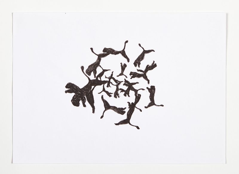 After this initial series, Ibrahimovic began drawing all the national teams of the Euro 2000, but with famous artists replacing the footballers. A seemingly nonsensical act, that nonetheless mirrored the replacement of his former friends and colleagues for imaginary new ones of the art world he now entered as an art student. Whereas he was projecting his lost and imaginary past into the series with Bosnian Youth Players, he was now projecting his unknown and imaginary future into art star series. These drawings, then, represent a double movement: back to the future. As such they are also locked in a double bind, and supplied with an ethical imperative - as if he is indeed continuing the halted lives and fragmented existences of his peers into the art world. The migratory experience: A new career in a new town. And it is this double bind that drives Ibrahimovic's drawings - an ethical imperative to speak for the dead: The Draughtsman's contract.