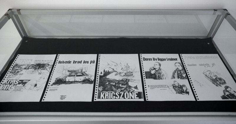 — Put in another way the perceptual method employed by Tolj is apparently a question of making the world perform for us, whether it is through images, an event, through an anonymous person or the artist, personally. The ideal is actually “to make the work happen by itself,” as Ibrahimovic puts it. A good example of this is Ibrahimovic’s piece Seest 03.11.2004 (2008). This work, consisting of photos and delineations of newspaper front pages, is an artistic and personal documentation of the fireworks accident in Seest near Kolding. To Ibrahimovic, the accident held several layers of irony in relation to the issue of identity. Kolding was Ibrahimovic’s Danish hometown and the site of one of Denmark’s first camps for refugees from the Balkans. One of the most significant ironies was that not only did the site of the accident resemble a bombed out Bosnia physically, it was also described and analyzed as a war zone in the media, complete with destroyed homes and devastated families. Whereas these media images caused many Danes to feel like strangers in their own city, the ‘stranger’ Ibrahimovic suddenly experienced his surroundings as familiar and therefore, in a grotesque sense, as assuring.