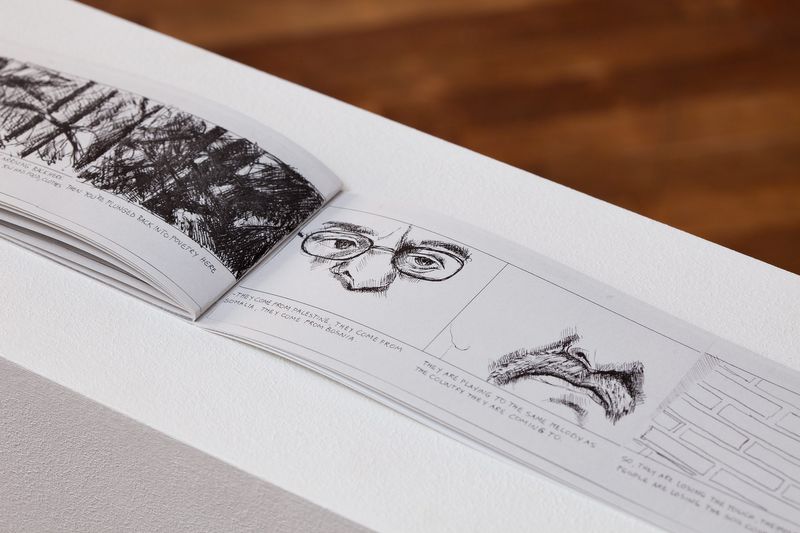 Amel Ibrahimovic’s Your Danish is Good is a multipart work that weaves together past and present, history and memory, self and other. Repetition, in several forms, is at the core of this undertaking. At the macro level, repetition is at stake in the periodic historical recurrence of violent conflict, mass killing, forced migration, inhospitable resettlement and xenophobic retort–each time a forgetting of the last instance, as if the past is incapable of instructing the present. Repetition is also a psychic mechanism that arises at the level of the individual, when past events are brought back through traumatic recall and through the incomplete and selective processes of memory and memorialization. In Your Danish is Good, importantly, repetition is also present in the materiality of the artwork, concretized in the very instance when the draughtsman’s memories of the past prompts the movement of the drawing instrument against the paper’s surface, turning an irretrievable past into manifest image. In the work’s rearticulations across media, the image shapeshifts further from inscrutable personal memory to unregulated public representation: in a book that can be read and disseminated; through reproduction into a poster image that can depart the circumscribed gallery context in multiple hands and, finally, into the form of a puzzle, potentially remembered by others in its repetitive recomposition. In each of these instances, the past is made present through the act of repetition. Paradoxically, however, this retrieval, which enables the past to appear and be understood in the current moment, can simultaneously entail a severing of the link to the past. Images flash up in the here and now, but the past to which they are bound, the truths from which they arose, also risk fleeting away.
