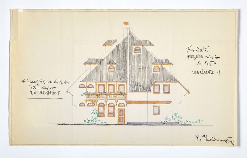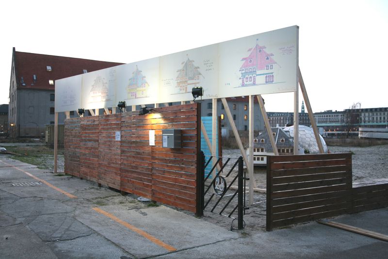 THE WORK TAKES FIVE ARCHITECTURAL DRAWINGS MADE BY AMEL IBRAHIMOVIC’S FATHER REUF IBRAHIMOVIC IN 1997 AS ITS POINT OF DEPARTURE. AFTER THE WAR IN BOSNIA REUF IBRAHIMOVIC DESIGNED A HOUSE, CALLING IT A BOSNIAN HOUSE. IT HAS SINCE BEEN CONSTRUCTED AS A STANDARD HOUSE. A CONTRAST TO THE TYPICAL DANISH HOUSE GARDEN AMEL IBRAHIMOVIC USES THE FRAME OF THE EXHIBITION TO DISPLAY BILLBOARDS WITH THE DRAWINGS AND A MODEL OF THE BOSNIAN HOUSE, WHICH MIGHT NOT BE THAT BOSNIAN ANYWAY. BY THE EARLY 1990S AN ENORMOUS REFUGEE FERRY, ‘FLOTEL EUROPA’, A FIVE STOREY FLEETING HOTEL WITH MORE THOUSAND REFUGEES FROM BOSNIA AND HERZEGOVINA, LAY AT KRØYERS PLADS. EVERYONE HAD LOST THEIR HOMES AND LIVED AT THE FLOTEL FOR MORE YEARS. TODAY KRØYERS PLADS IS A DESIRED AND DISPUTED SITE MEETING A YET UNKNOWN DESTINY. ACCORDING TO AMEL IBRAHIMOVIC THE PROJECT WORKS AS A PROPOSAL FOR WHAT TO BUILD ON THE EMPTY SPACE: IT IS ABOUT CONSTRUCTING, BUILDING, GETTING ON WITH ONE’S LIFE, ABOUT THE FUTURE BEING OUR COMMON PROJECT.